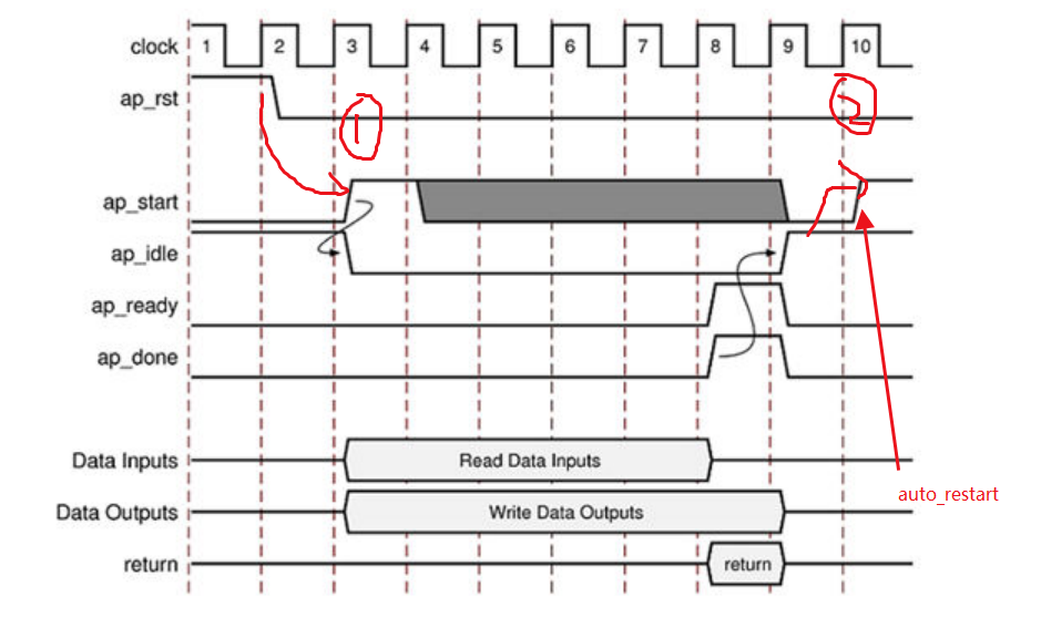 b.操作何时终止,ap_done信号拉高后,不再拉高ap_start信号