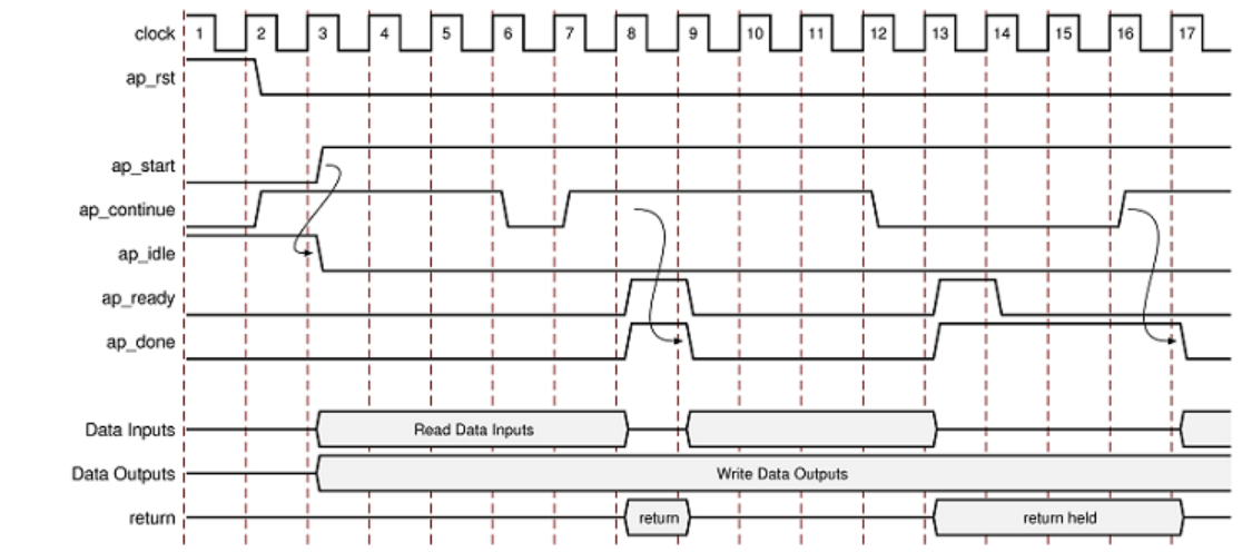 ap_ctrl_chain块IO协议类似ap_ctrl_hs协议,多提供一个ap_continue端口。