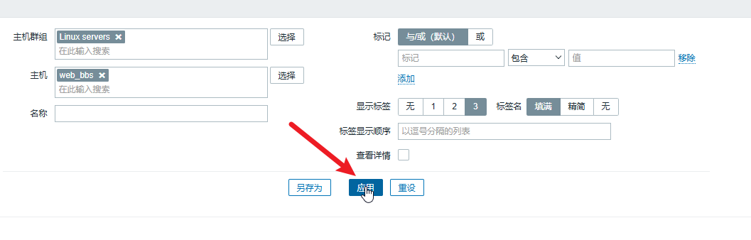 因为前面在添加主机时已经把 Web 主机添加到 Linux servers 组,所以在选择 Linux servers 组后,我们可以单击 “主机” 对应的 “选择” 按钮,目前在 Linux servers 组中只有一台被监控主机(web_bbs),勾选 “web_bbs” 复选框,单击 “选择” 按钮,如图1 所示。在主机选择完毕后,单击 “应用” 按钮即可查看被监控主机的监控数据,如图 2 所示。