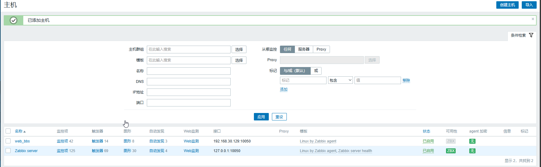 5.手动添加监控主机