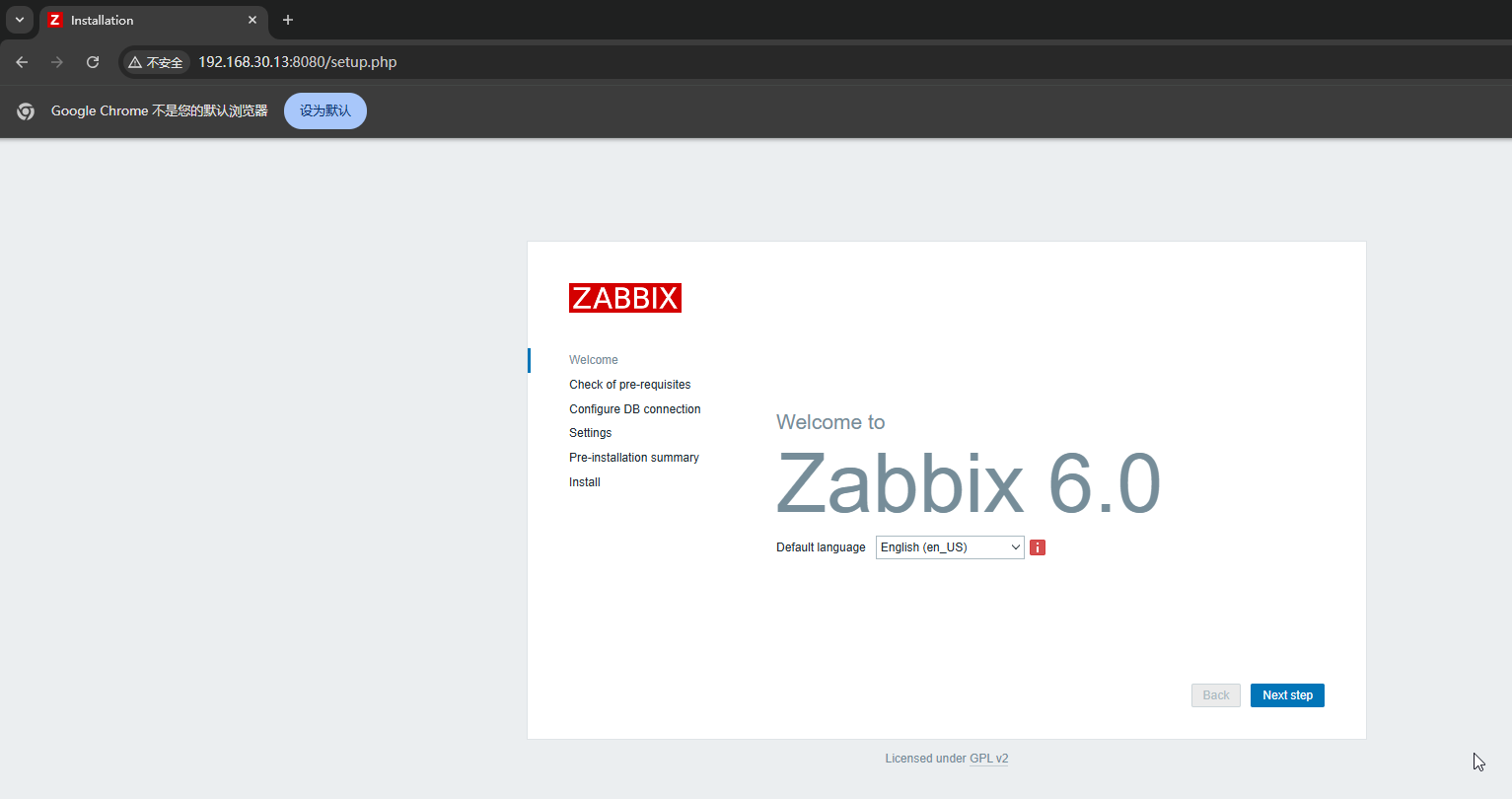再访问zabbix.example.com:8080就可以进入zabbix初始化了