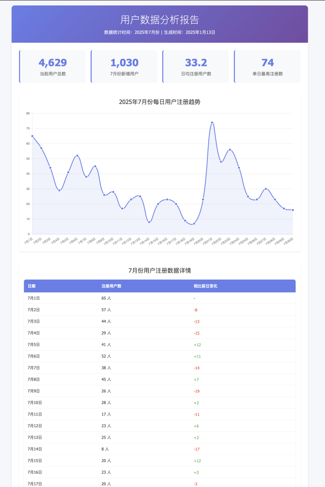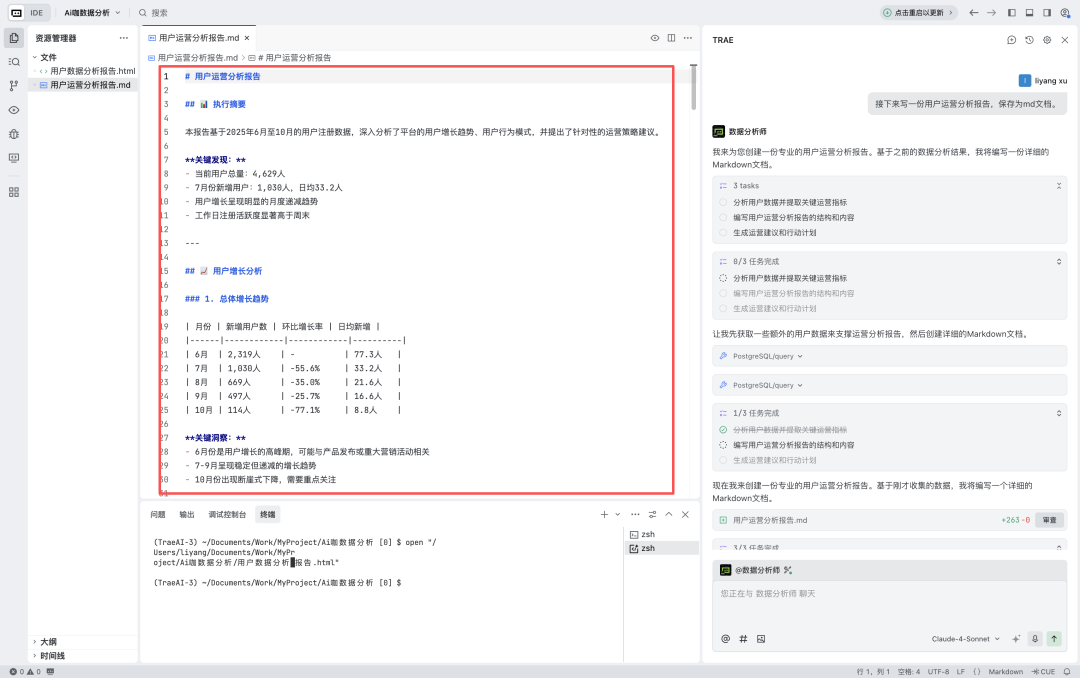 1分钟后,输出了一份完整且有深度的用户运营分析报告。