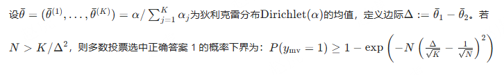 注 1:该结果凸显了多数投票的放大效应 —— 即便正确答案的概率仅略高于其他备选答案,随着智能体数量N的增加,成功概率的下界也会渐近趋近于 1。值得注意的是,只要正确答案仍是最可能的选项,这一结论依然成立。