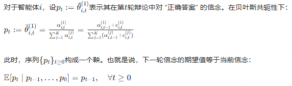 由此可证明,智能体信念的演变过程构成一个鞅过程,完整证明见附录 C。