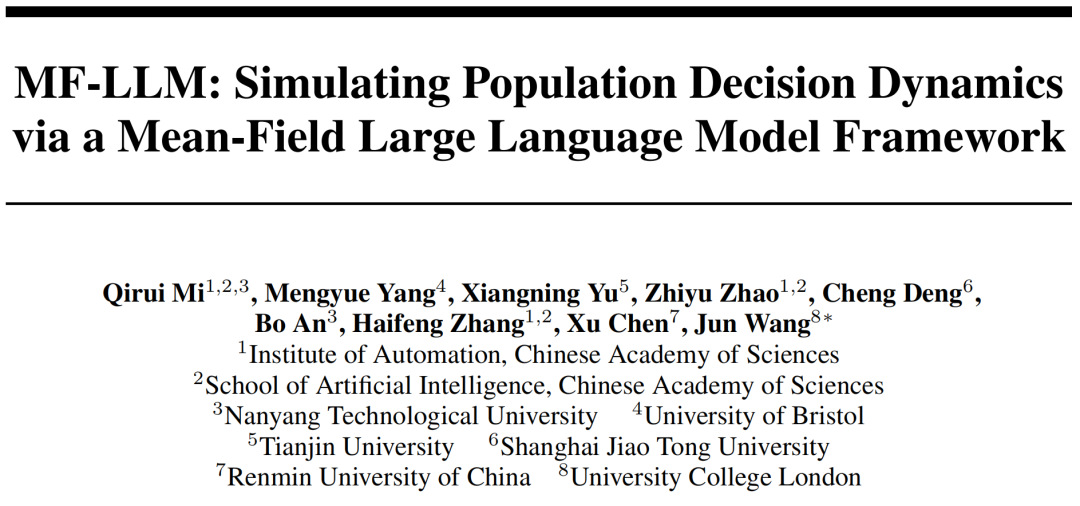**论文标题:**MF-LLM: Simulating Population Decision Dynamics via a Mean-Field Large Language Model Framework
