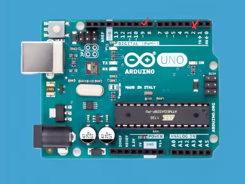 注意:引脚(Pin)是板载的物理连接点,可以通过导线连接到其他元件(如LED)。这些引脚是微控制器与外界交互的接口。当不接2接9时