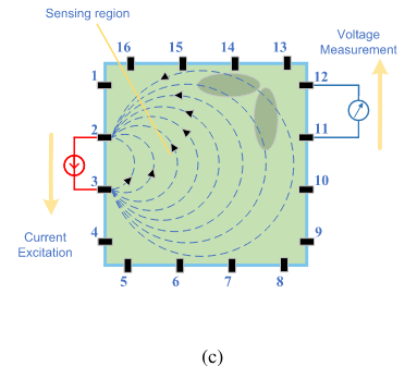 - 可穿戴设备(图 6 (b)):用 EIT 做的柔性传感器,能贴在手臂上,测手臂的弯曲动作;