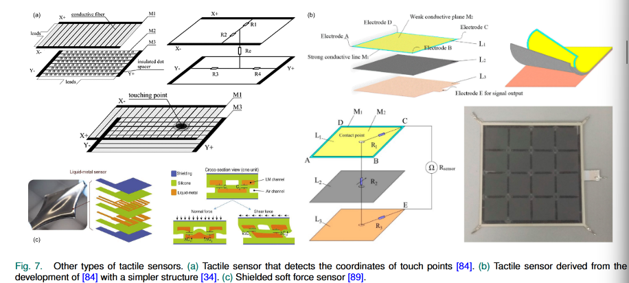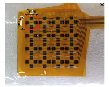 - 比如图 7 (a) 的传感器,只用 6 根线,就能测到 0.0214N 的力(相当于 0.2 克的重量),定位误差只有 1.5mm,适合贴在机器人大面积表面;