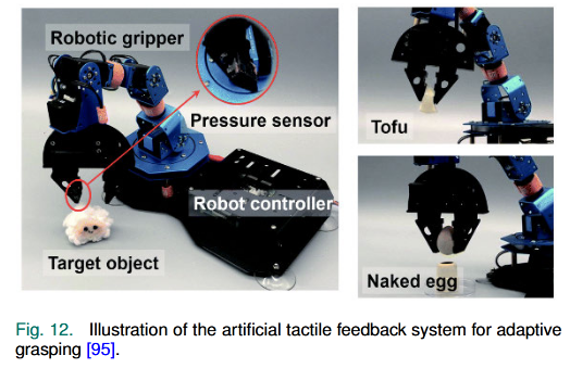 - 自适应抓取(图 12):机器人抓手装电容传感器,抓鸡蛋时能实时测握力,不会捏碎;抓石头时会加大力度,不会掉;