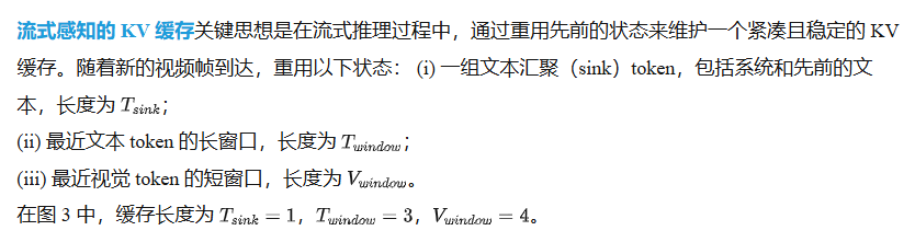 高效KV缓存复用机制: 结合 attention sink、短窗口视觉缓存与长窗口文本缓存,实现低延迟、高稳定的实时视频理解。