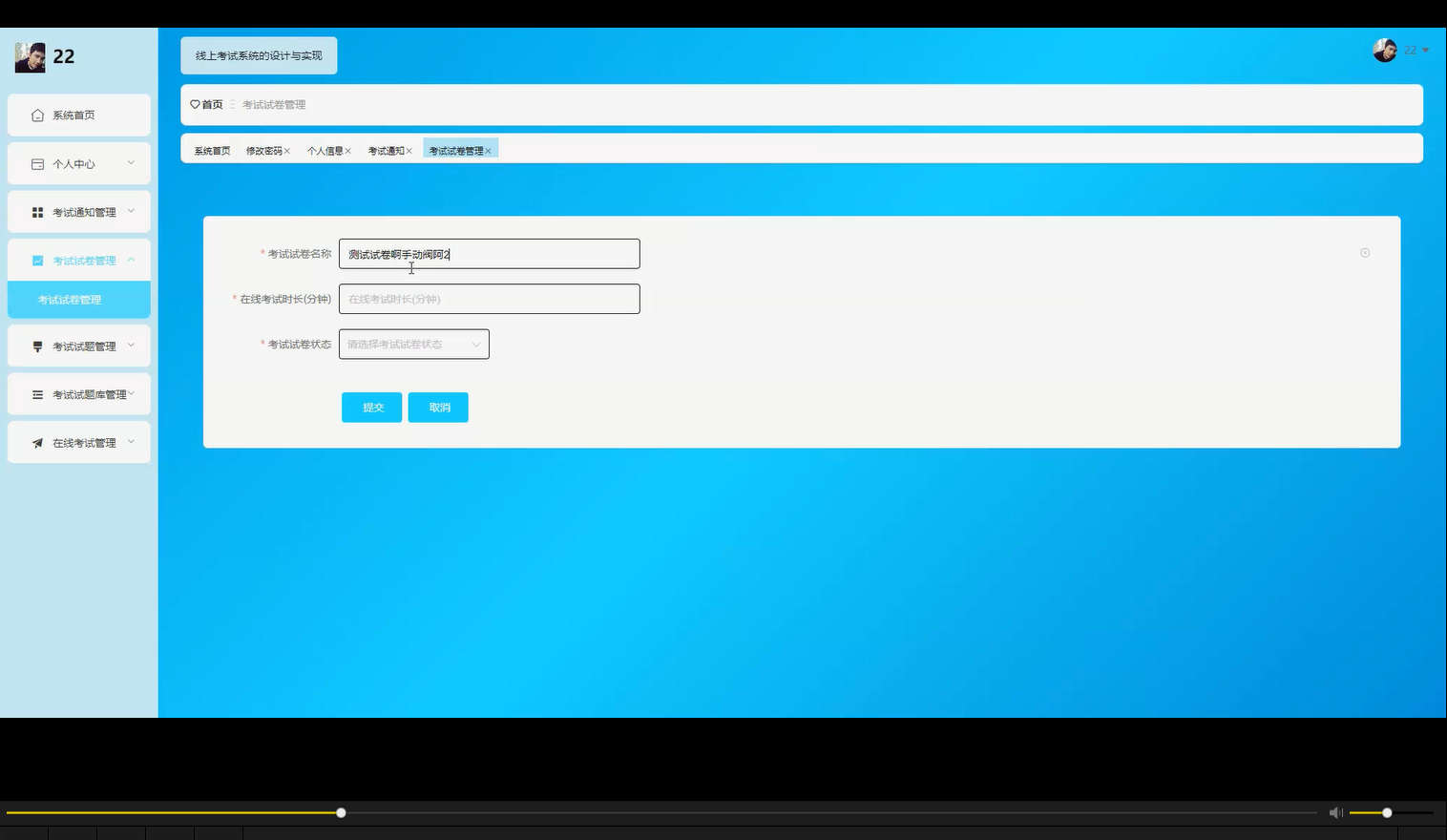 本系统采用SpringBoot作为后端框架,结合Vue.js前端技术,构建了一个高效、稳定的线上考试平台。后端使用Java语言开发,数据库采用MySQL,确保了系统的性能和可扩展性。系统功能包括用户管理、试题库管理、考试管理、成绩统计和数据分析等模块。管理员可以通过系统创建和管理考试,教师可以上传试题和组卷,学生则可以在线参加考试并查看成绩。系统还支持自动阅卷和成绩分析功能,帮助教师快速了解学生的学习情况。前端采用Vue.js实现动态交互,提升了用户体验。关键词:SpringBoot、Vue.js、MySQL、用户管理、自动化组卷、成绩分析。