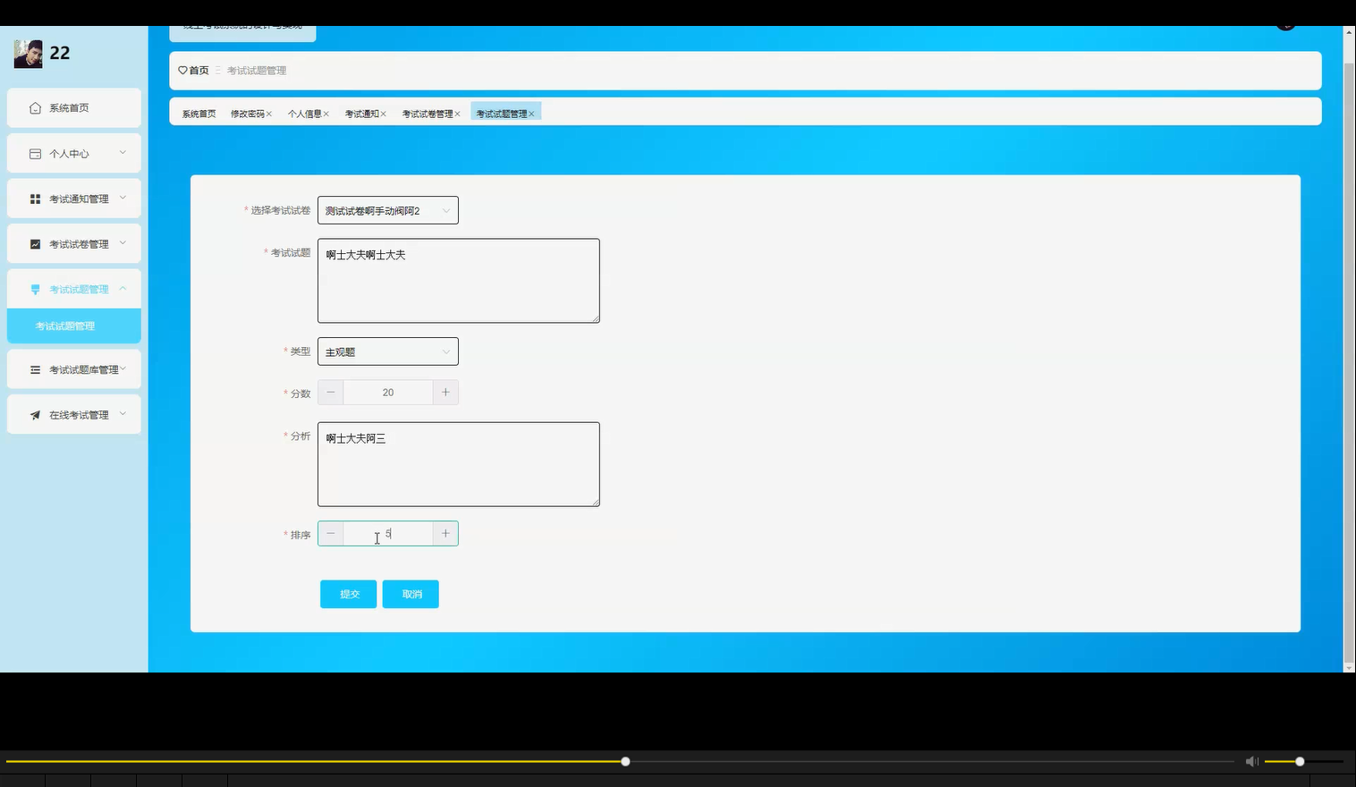 试题库数据表
