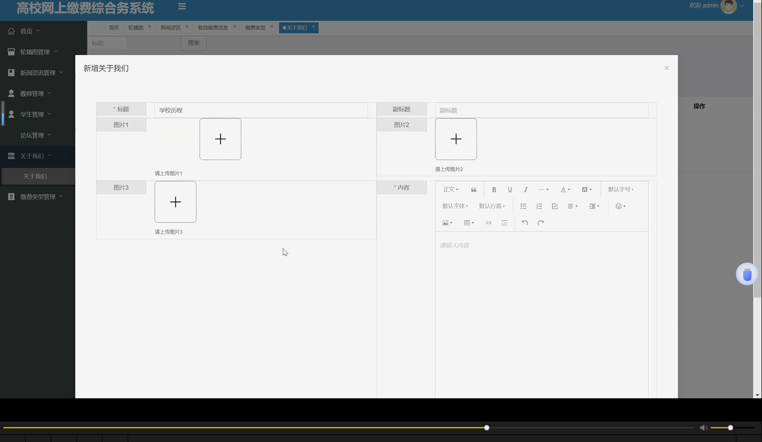 随着高校信息化建设的不断深入,传统的线下缴费方式已无法满足现代化管理的需求,学生和教职工在缴费过程中面临流程繁琐、效率低下等问题。高校网上缴费综合管理系统通过数字化手段整合学费、住宿费、考试费等各类缴费项目,实现统一管理和在线支付,从而提升财务工作效率,优化用户体验。该系统能够有效减少人工操作错误,降低管理成本,同时为高校财务部门提供实时数据分析和报表生成功能,助力高校财务管理向智能化、高效化方向发展。关键词:高校缴费、数字化管理、财务优化、在线支付、信息化建设。