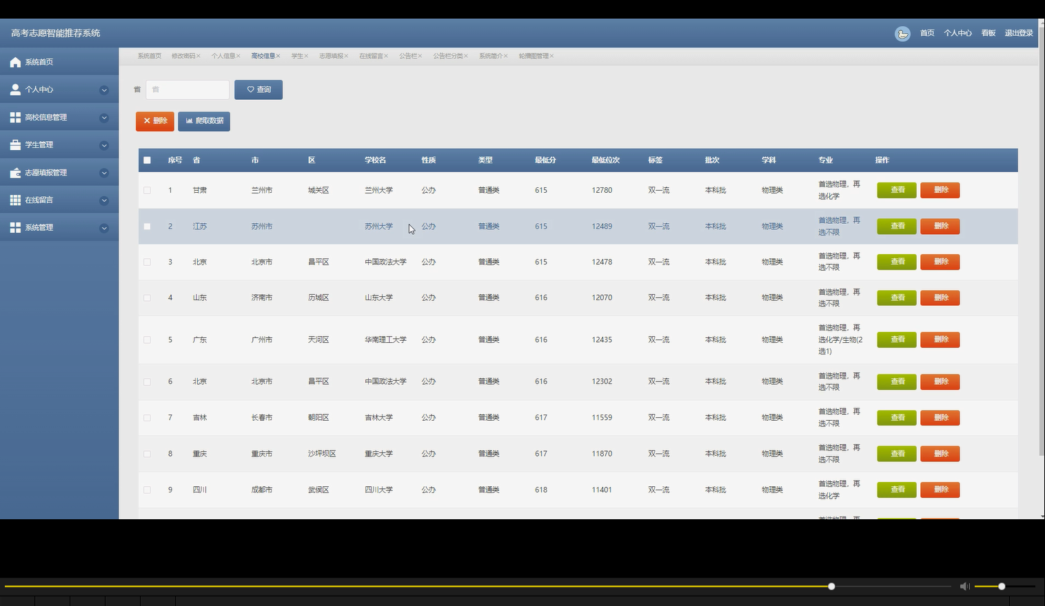Java SpringBoot+Vue3+MyBatis 高考志愿智能推荐系统系统源码|前后端分离+MySQL数据库,拿走直接用(附源码,数据库,视频,可提供说明文档(通过*AIGC*)*技术包括:MySQL、VueJS、ElementUI、(Python或者Java或者.NET)等等*功能如图所示。可以滴我获取详细的视频介绍