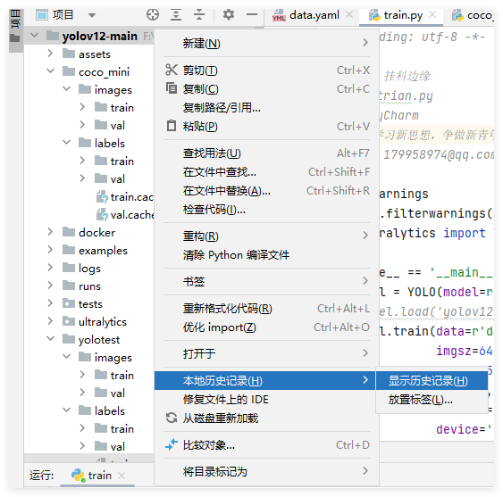 pycharm中的项目支持查看历史版本的项目代码,可以回滚跳转