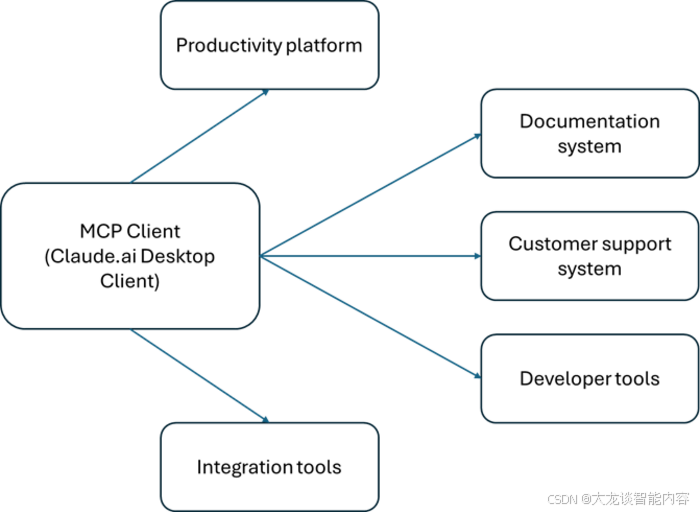 MCP客户端(如Claude桌面端)可连接多个MCP服务器