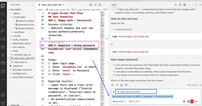 生成智能体可读取Markdown测试计划,并生成可直接运行的Playwright测试脚本。