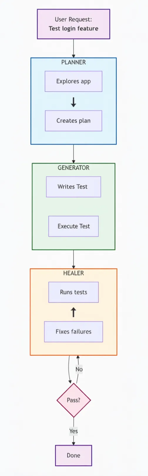 接下来,我们将探讨各个人工智能驱动的Playwright智能体如何适配并优化这一传统流程👇