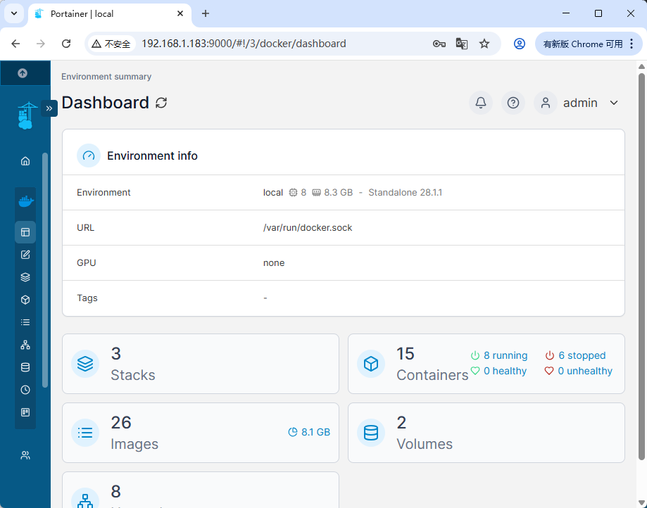 5,登录后,你就可以通过 Portainer 直观的用户界面来管理你的 Docker 容器、镜像、网络、卷等资源了。
