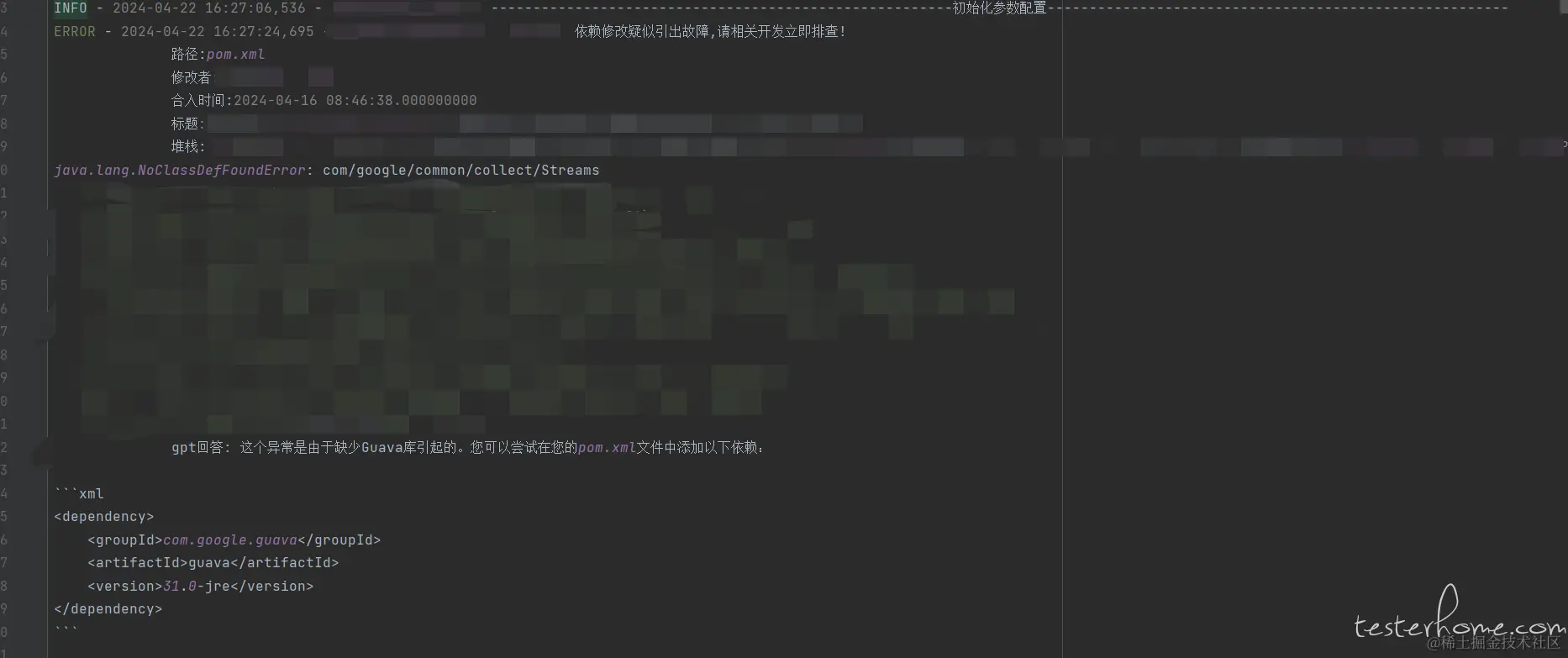 A. 经常性的泄露一些修改 java 依赖引发的故障,在 maven 的 pom.xml 文件中修改一个依赖的版本号都可能引出故障,见下图例子