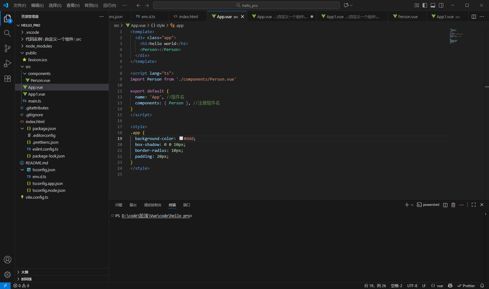 把Person.vue注册到App.vue,然后使用上面这个页面效果。