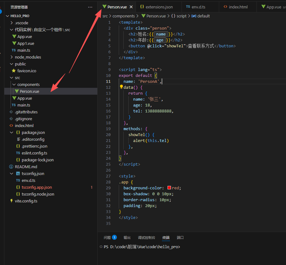 新建目录components,添加一个Person.vue,加点基本信息,如图。