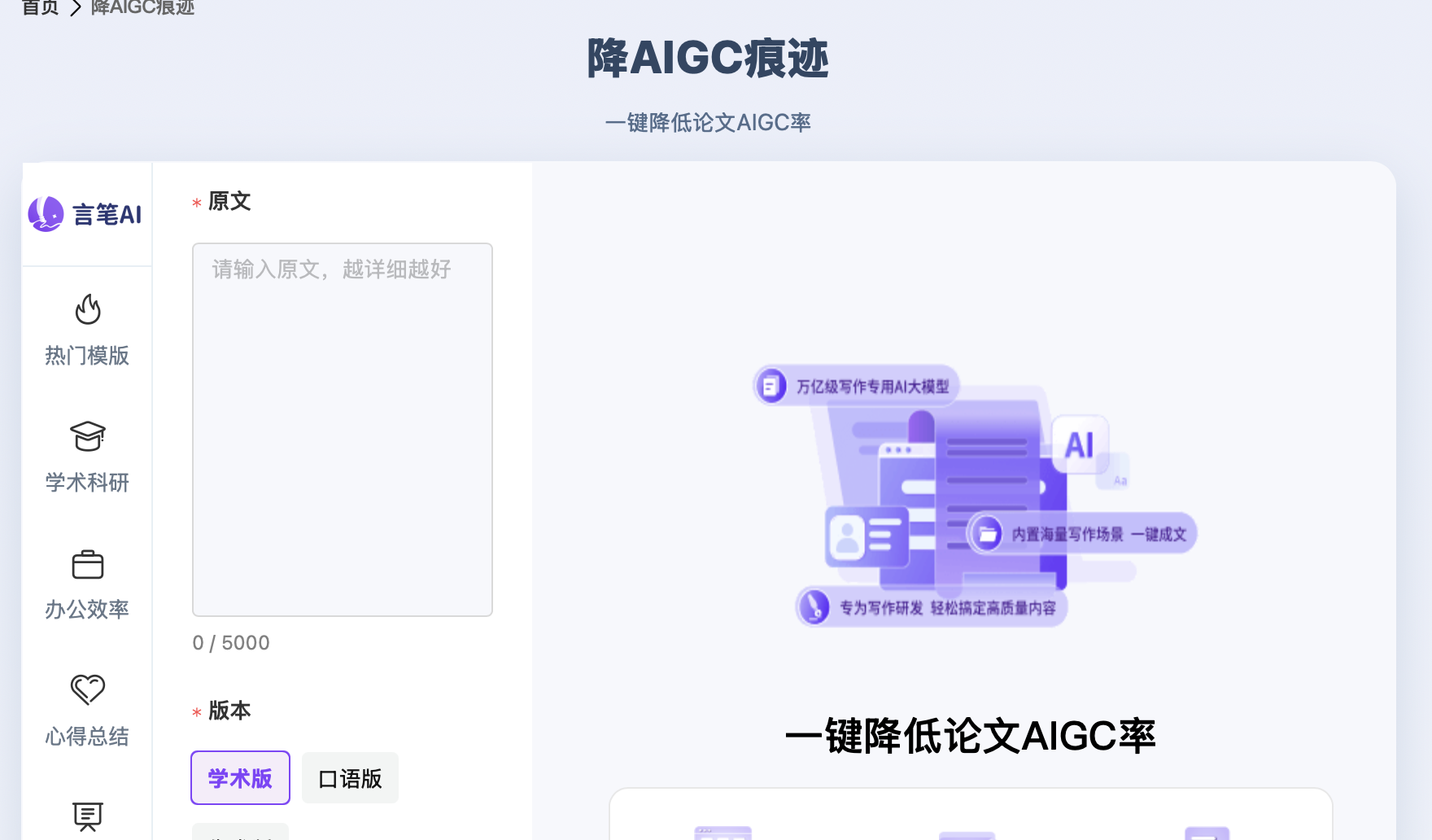 - 适合人群: 只需要处理少量文本、短段落,适合论文前期修改、调结构用。