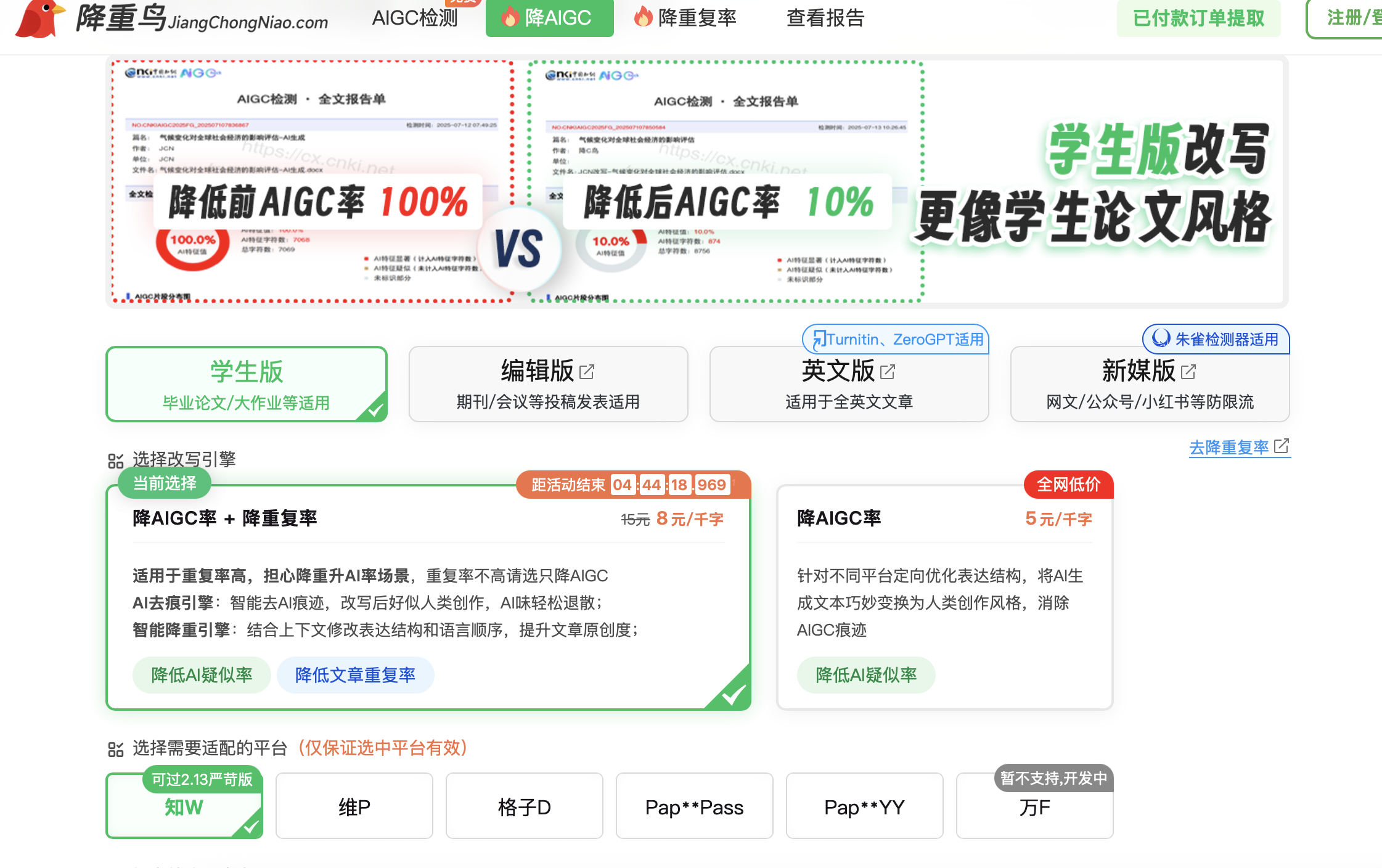 如果想省心省力。 我的建议是。 别总想着找那些“免费降ai率”的噱头。 很多时候效果很差。 那些所谓的“免费降低ai率”服务。 或者“aigc免费降重”服务。 往往是最大的坑。