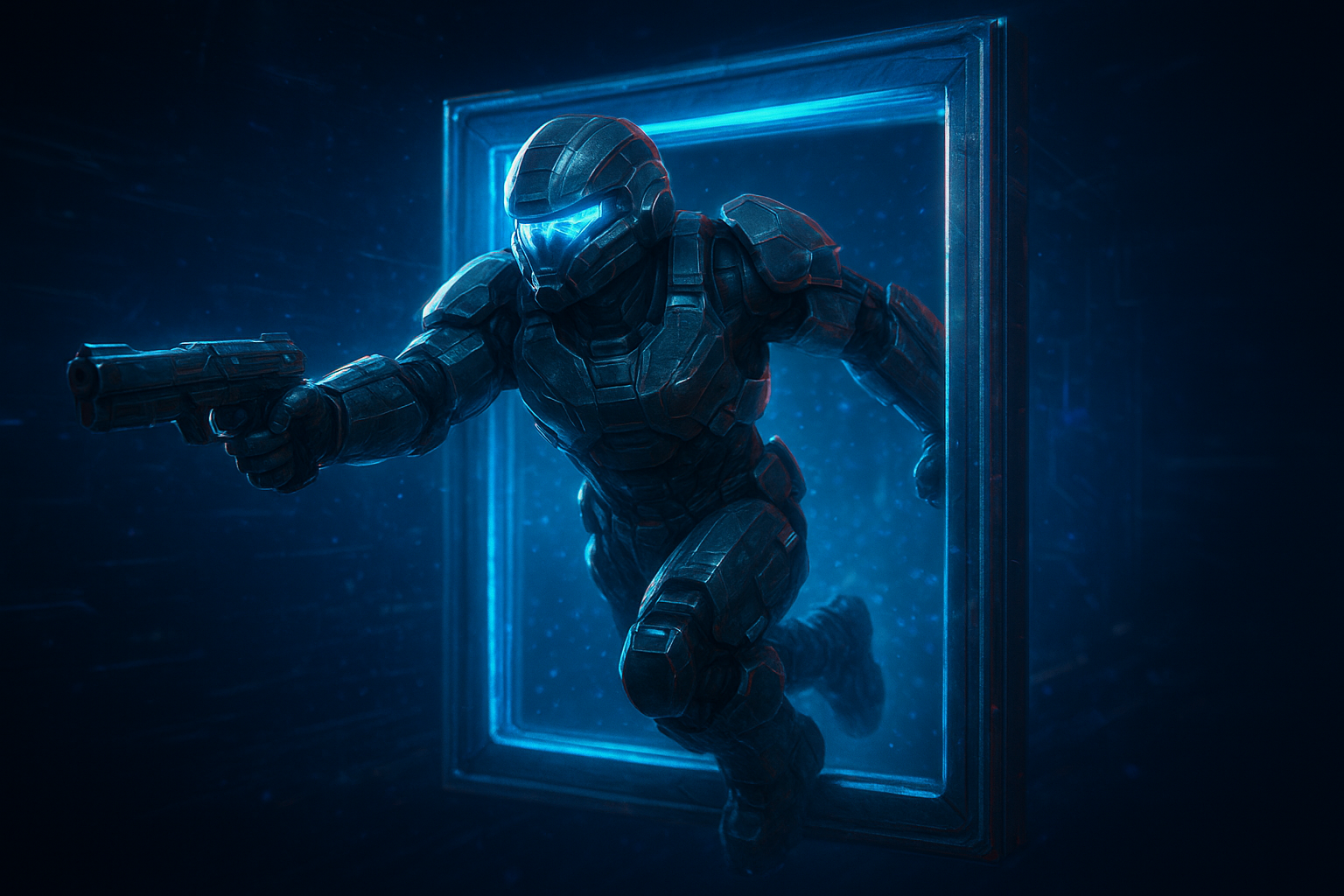 当你第一次看到下面这张图时,是否有一种错觉——仿佛那名穿着重甲的未来战士真的从二维画面中冲了出来,枪口几乎指向屏幕之外?