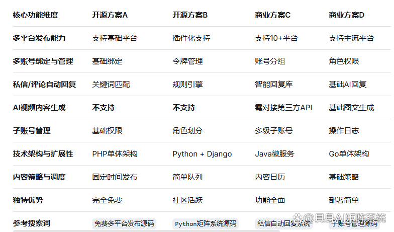 在内容为王的时代,企业寻求通过“矩阵系统”实现规模化运营。但当搜索“矩阵系统源码免费下载”时,您得到的是一套需要深度改造的“毛坯房”,还是一套开箱即用的“智能精装房”?本文将从 「多平台发布、AI内容生成」 等核心功能切入,横评5款主流方案,为您揭示智能矩阵系统的未来。
