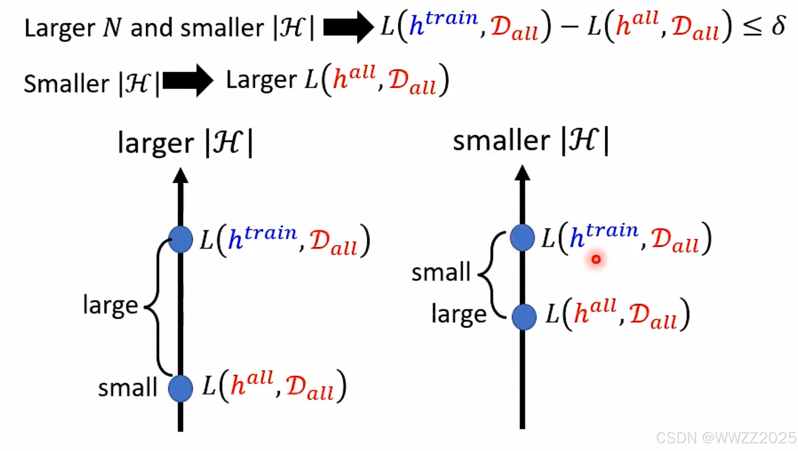 PS.深度学习可以解决模型复杂度H与训练集L(h-trian,D-all)的冲突问题,这是机器学习所不能的。