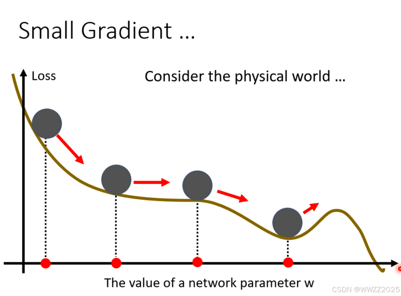 物理世界中小球从高处下降,遇到小坡因动能惯性会冲出小坡继续下降,将该原理引入深度学习。
