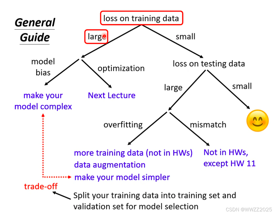 PS.数据集需要分成三个部分:训练集(Training Set)、验证集(Validation Set)、测试集(Test Set),验证集是为了防止过于依赖训练集中数据降loss,导致用于测试时在测试数据集上效果不佳。