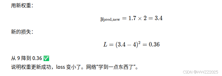 (4)用梯度下降(gradient descent)更新权重,让 loss 变小一点。