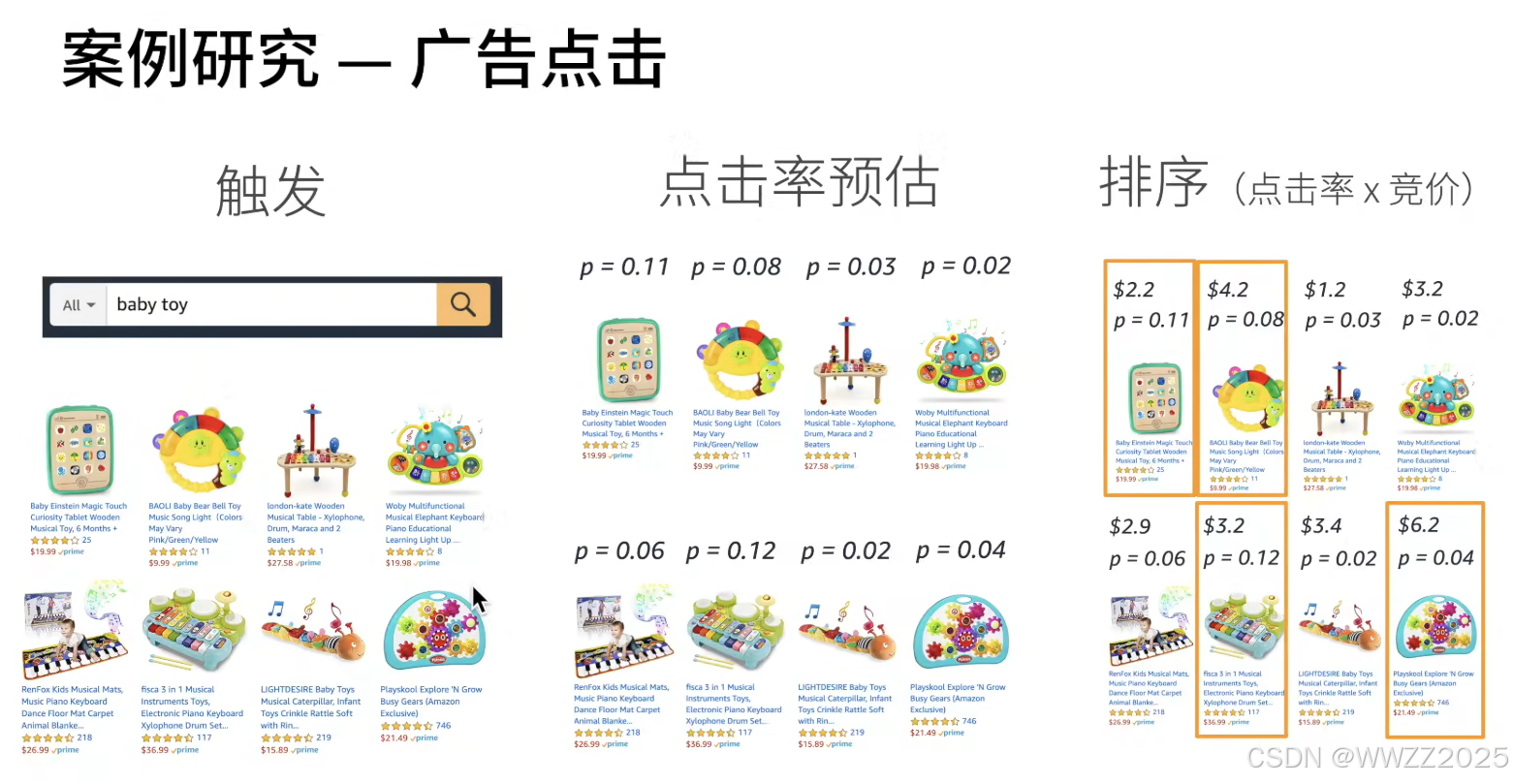 该案例中预估的点击率由过去一段时间广告展现和用户真实点击情况训练得来。