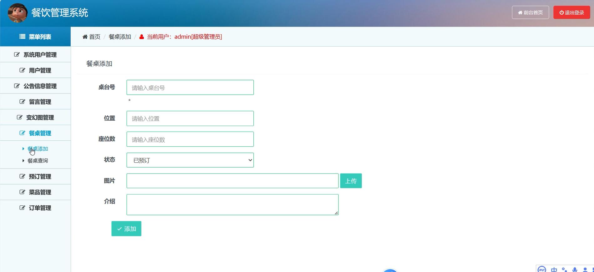 自习室信息管理:实现自习室信息的添加、修改、删除和查询功能,包括自习室编号、名称、类型、大小、状态、照片、负责人和备注等信息。