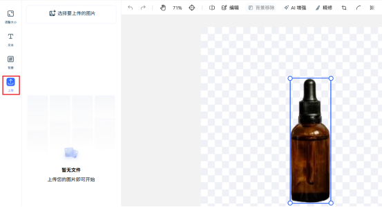 5. 上传和优化:若需添加更多图片,使用“上传功能”,然后在横排导航条中进行精细调整,如背景移除、裁剪等。