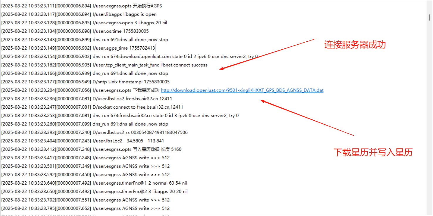 对于辅助定位需要注意的是,因为辅助定位属于强行把星历文件灌给 gnss 芯片,虽然可以达到快速定位的效果,但是 gnss 芯片实际解析星历需要时间,exgnss 库默认开启了一个 20s 的 gnss 应用,做这个操作是因为,假设开启辅助定位,定位到之后立马关掉 gnss 电源,会导致 gnss 星历解析不完全,这样会影响下次定位为冷启动,冷启动时间大概需要 35s。如果不需要这个逻辑,可以接受冷启动,或者每次都使用辅助定位,可以通过 exgnss.setup()的 auto_open=false 配置添加到配置表里面。