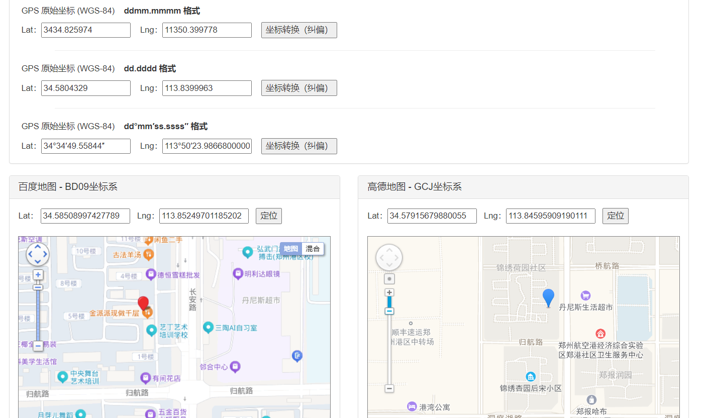 将定位成功后的经纬度复制到此页面。可以查看位置信息和坐标系转换后的经纬度。