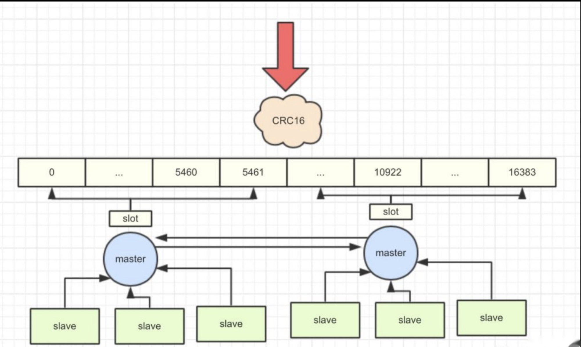 对象保存到redis之前先经过CRC16哈希到一个指定的Node上(这个过程即redis cluster的分片),集群内部将所有的key映射到16384个Slot中,集群中的每个Redis Instance负责其中的一部分的Slot的读写。集群客户端连接集群中任一Redis Instance即可发送命令,当Redis Instance收到自己不负责的Slot的请求时,会将负责请求Key所在Slot的Redis Instance地址返回给客户端,客户端收到后自动将原请求重新发往这个地址,对外部透明。一个Key到底属于哪个Slot由 (HASH_SLOT = CRC16(key) mod 16384) 决定。只有master节点会被分配槽位,slave节点不会分配槽位。