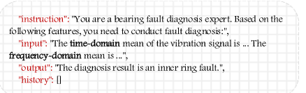 - 将物理信号“文本化”:将提取出的特征数值与它们的自然语言描述相结合,构建成LLM能够理解的“指令-输入-输出”格式,将故障诊断问题转化为一个LLM擅长的文本理解与分类任务。