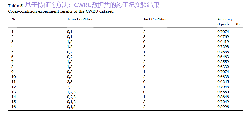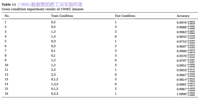 设计: 以CWRU数据集为例,它包含4种不同负载/转速的工况(0HP/1797RPM, 1HP/1772RPM等)。采用“留一法”,即使用三种工况的数据进行训练,在剩下的一种未见过的工况上进行测试,模拟实际应用中工况突变的情况。