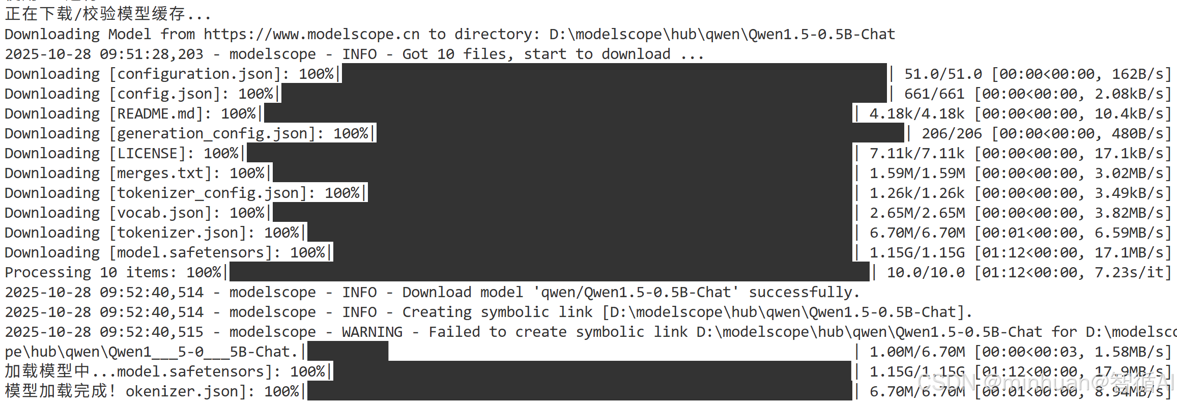 模型第一次加载如果本地没有时,会先下载到本地指定目录后再加载,第一次模型下载的日志;
