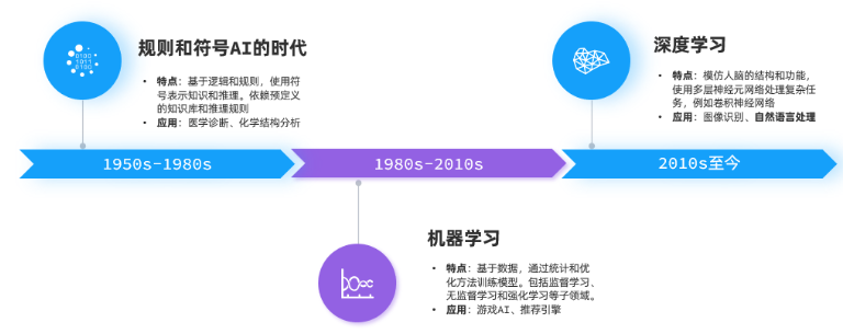 机器学习: 基于数据,统计和优化方法训练模型。包括监督学习、无监督学习、强化学习等
