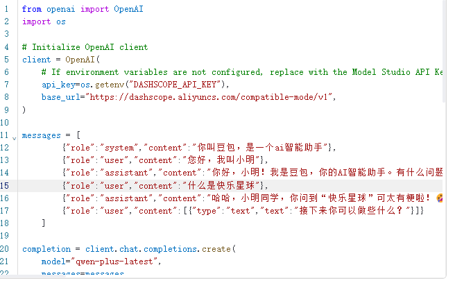# 1.初始化OpenAI客户端,要指定两个参数:api_key、base_url