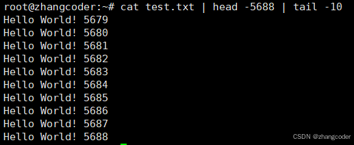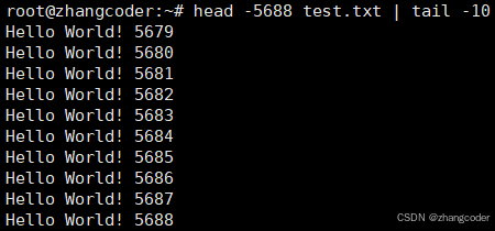 作用和head -5688 test.txt | tail -10等同