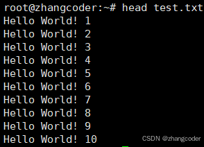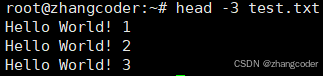 作用:设置要查看的行数,例如head -3 test.txt来查看test.txt的前3行