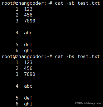 cat -bs test.txt