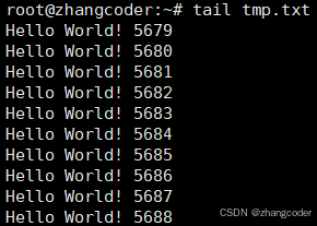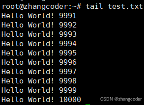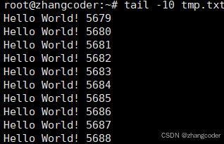 2.直接使用tail -10 tmp.txt来查看内容