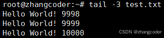 作用:设置要查看的行数,例如tail -3 test.txt来查看test.txt后3行